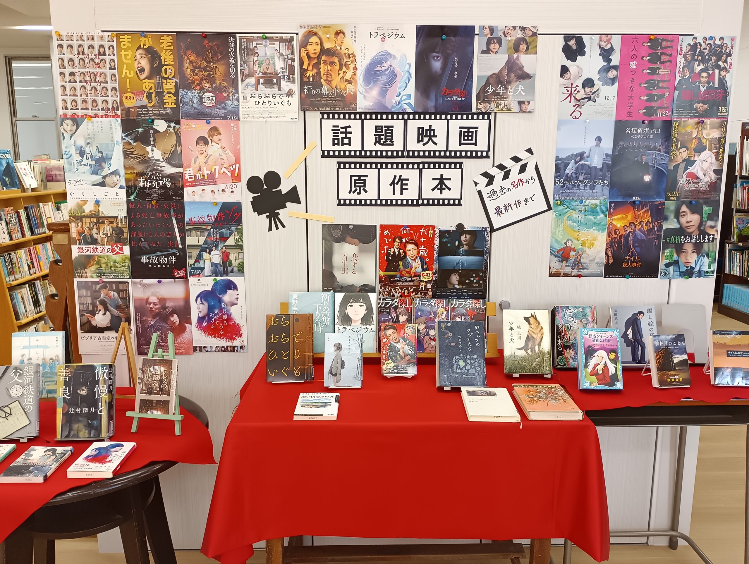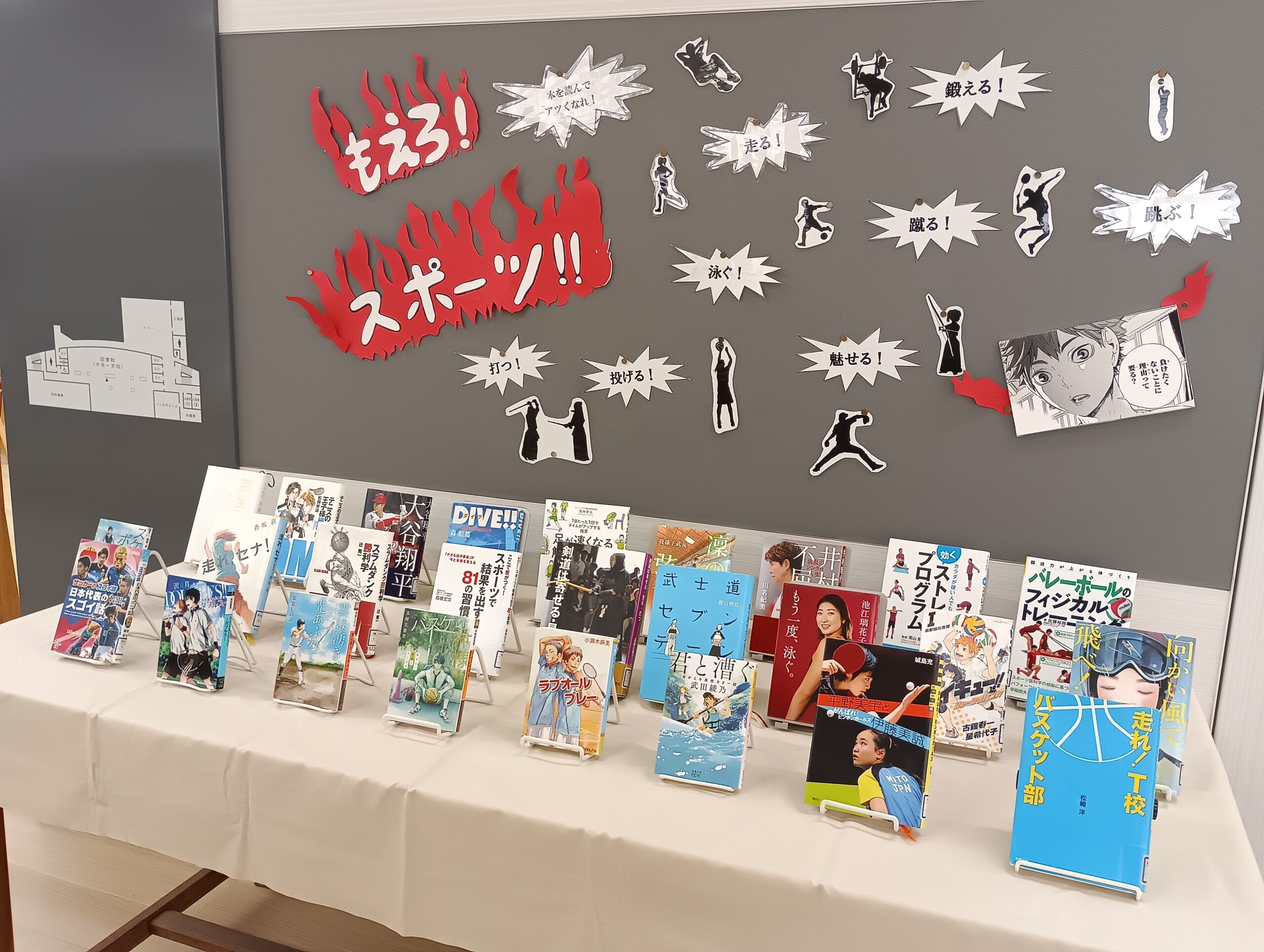9月は「話題映画原作本特集」「イラストコンテスト結果発表」「燃えろ!スポーツ本特集」を展示しています。