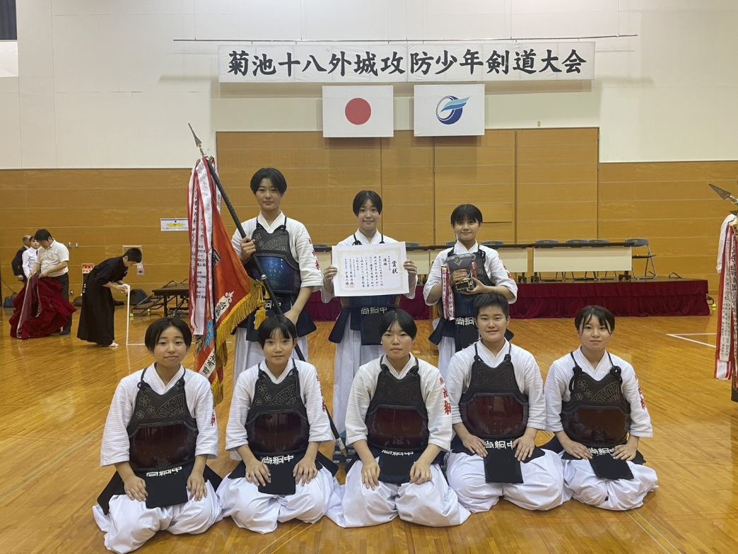 10月13日(月)、菊池市で「菊池十八外城攻防少年剣道大会」が開催され、中学生のAチームが優勝しました。