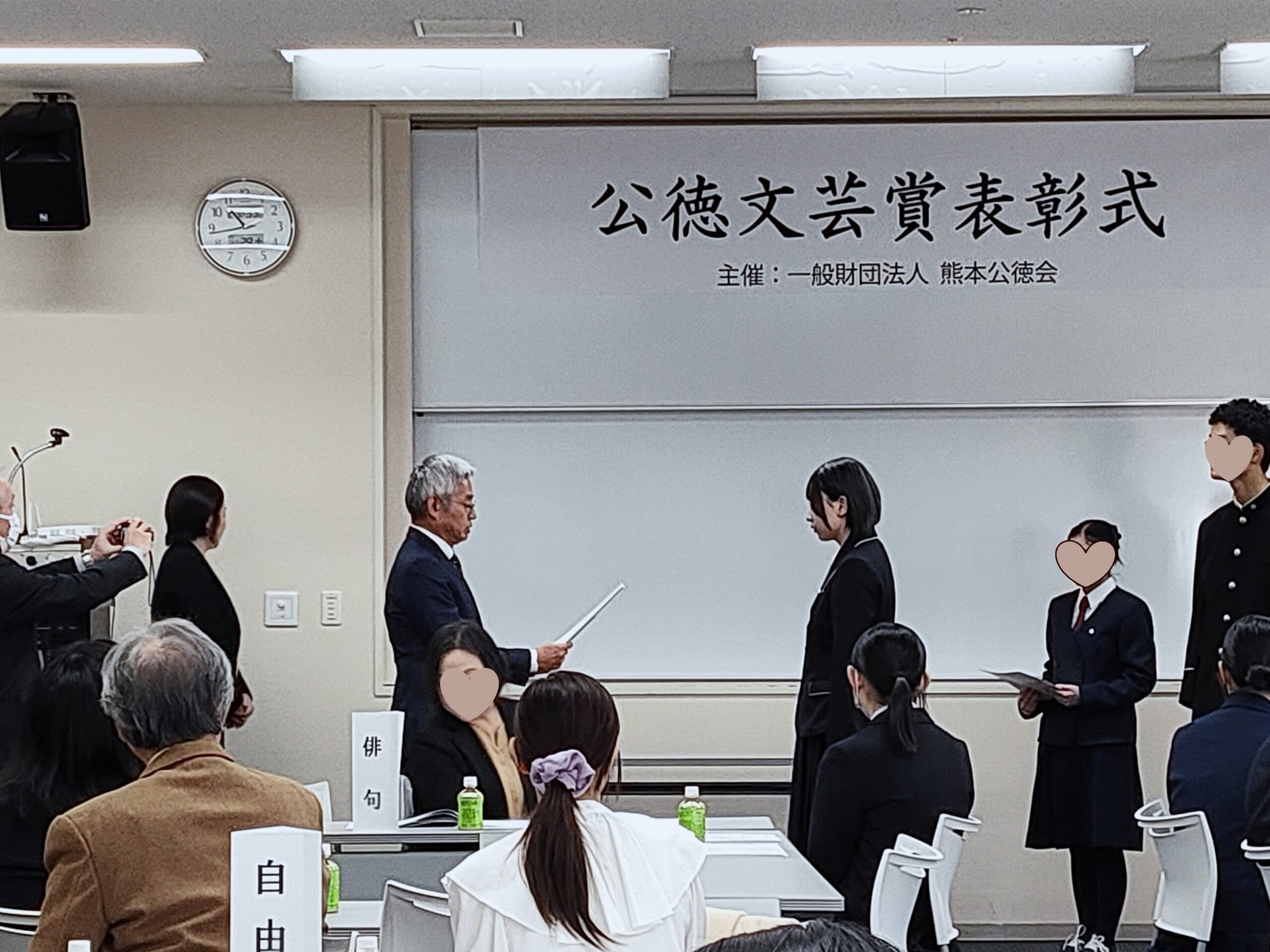 熊本県内の高校生を対象にした第22回公徳文芸賞の表彰式が11月29日、熊本公徳会カルチャーセンターで行われました。