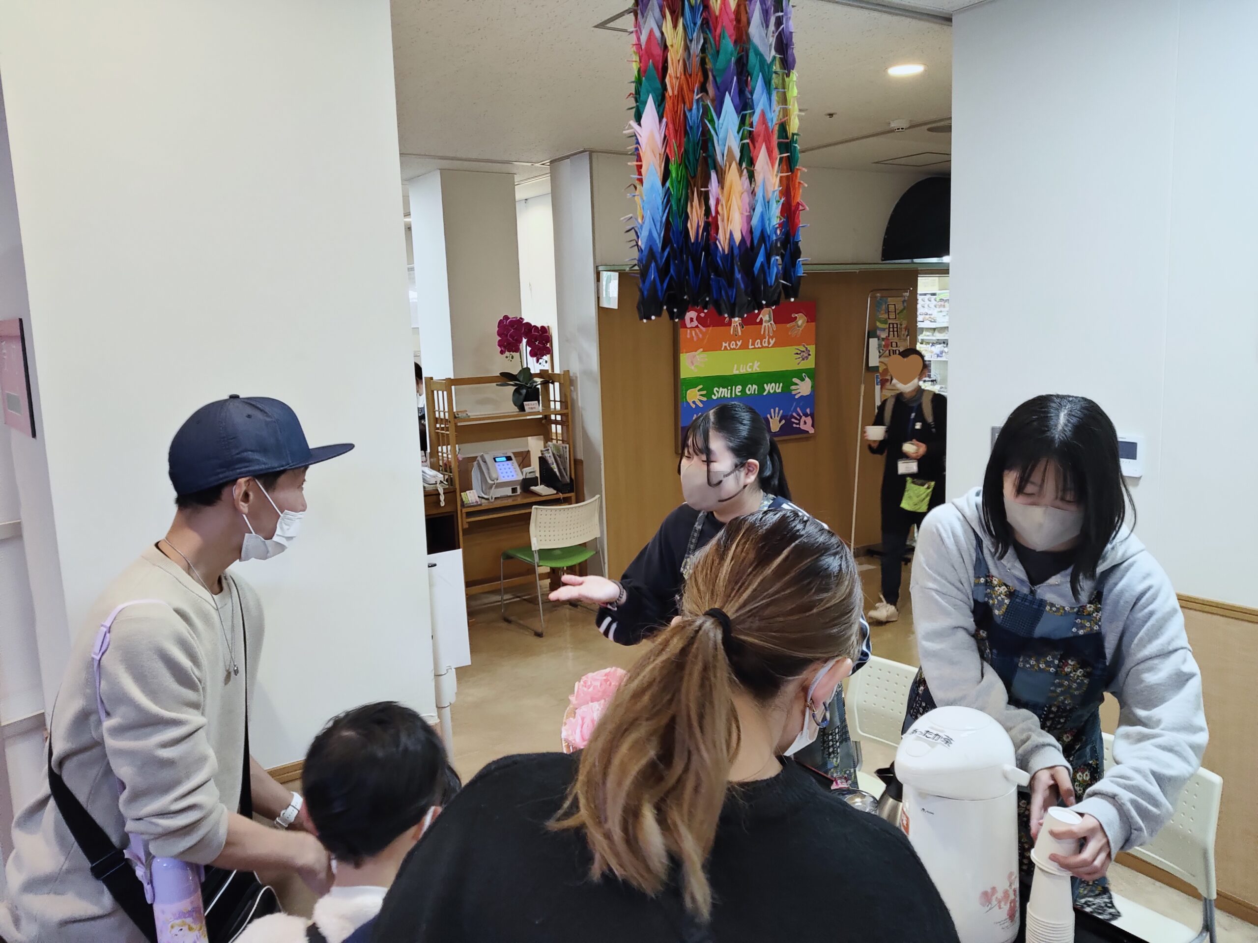 当日は、子どもたちを対象に折り紙やお手玉遊びの体験コーナーを担当したほか、来場者のみなさまへ健康茶の提供も行いました。病院スタッフの方々や多くの来場者の皆さまから「楽しかった」などご好評をいただきました。