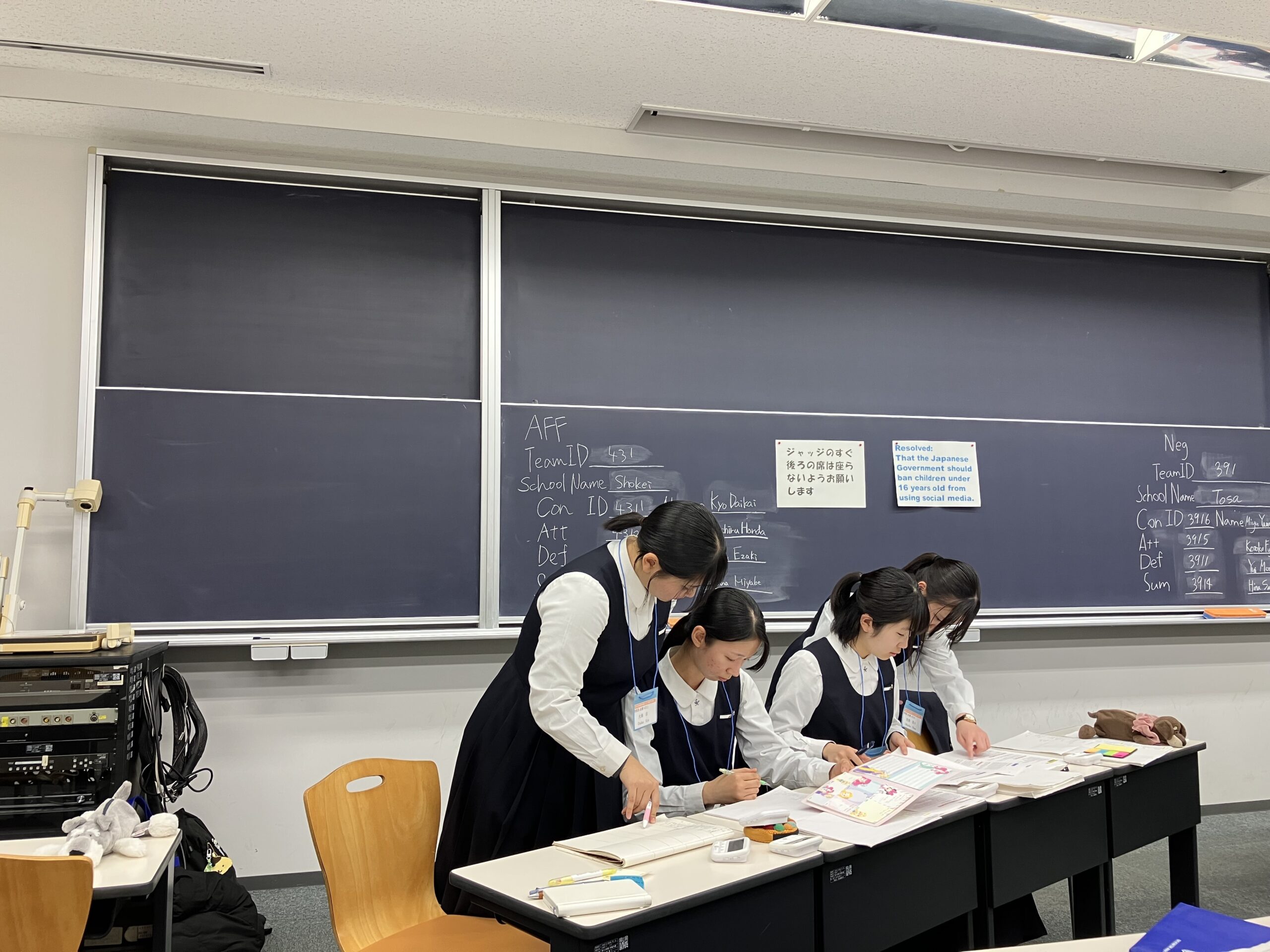※試合結果は、右側が肯定側、左側が否定側を示しています。本校は肯定側では全勝、否定側では全敗という結果となりました。