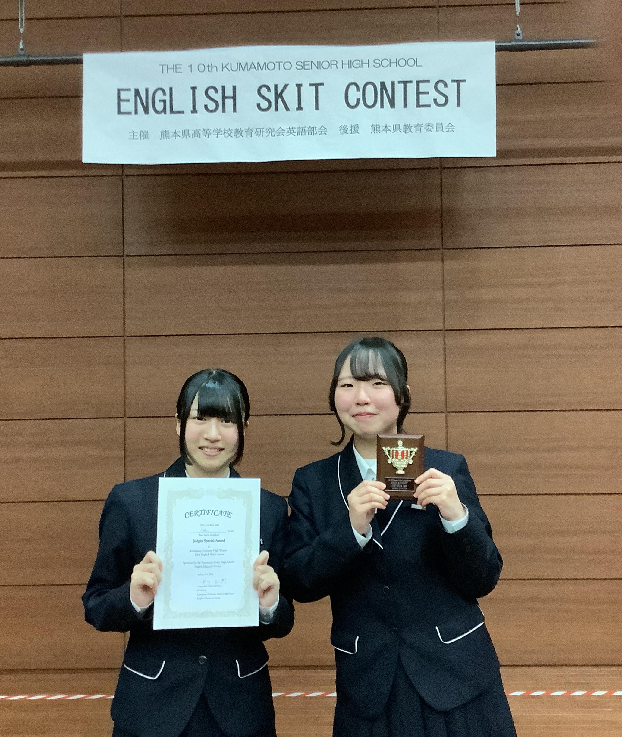 1月24日(土)、熊本学園大学にて開催されたこの大会に、本校2年生の白石さん、小山さんが出場し、「審査員特別賞」を受賞しました。