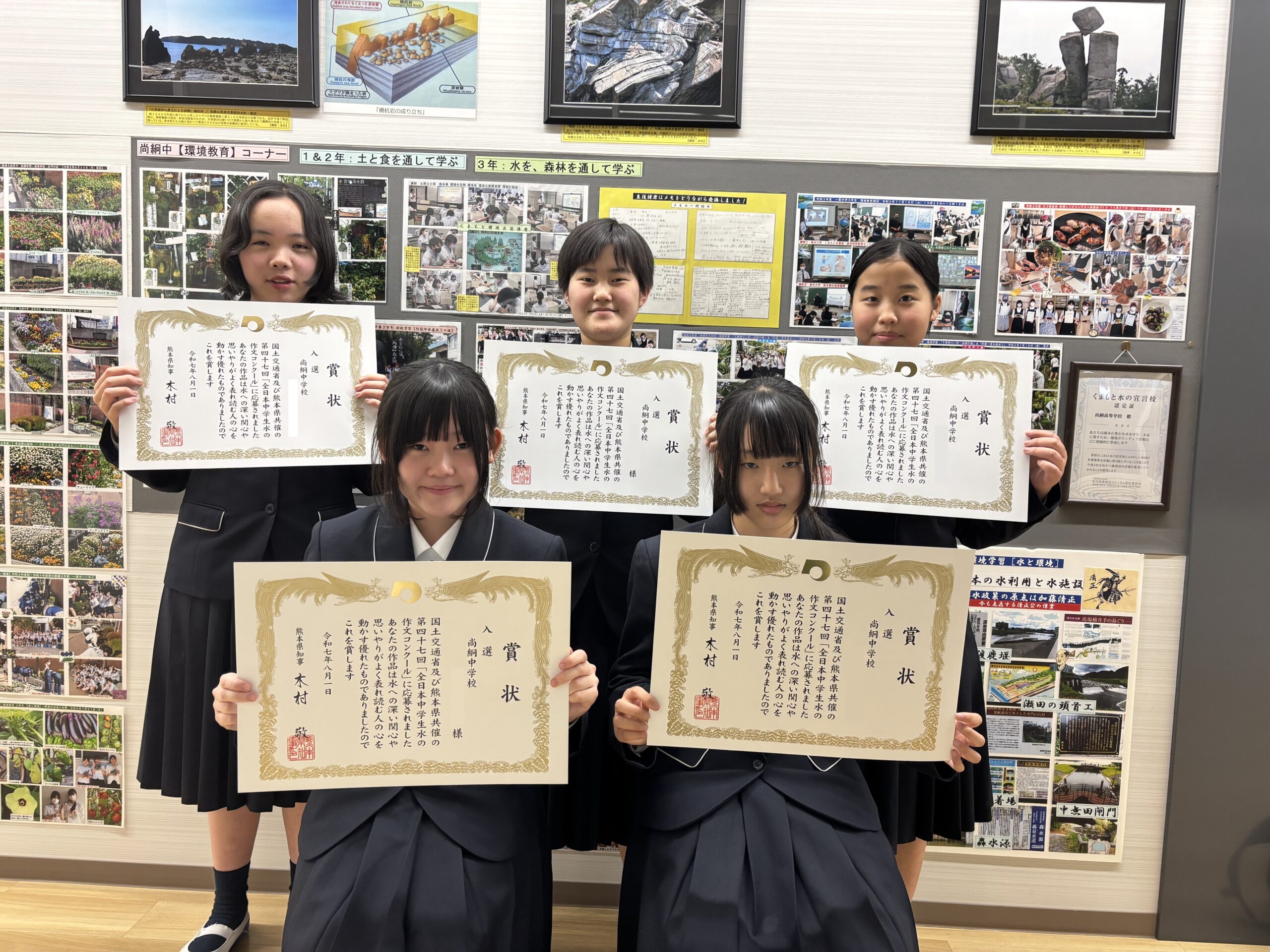 本コンクールは、水の大切さや水資源の保全について考え、自らの体験や学びを作文にまとめる全国規模の取り組みです。今回の受賞は、生徒一人ひとりが日頃の学習や体験を通して水環境について深く考え、自分の言葉で表現した成果であり、本校の環境学習の積み重ねが実を結んだものといえます。