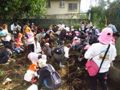 こちらは穴掘りのコーナーです。柔らかな畑の土を自由に掘って遊ぶことができます。シャベルの使い方が上手です。