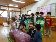 「ママが来たら、教えてね。」とお願いに来てくれた園児や、「終わったらみんなでサーティーワンに行くんだ。」と終了後のことが気になる園児、また「昨日、ママとお姉ちゃんと、パパにチョコレートを作ったんだ。」と嬉しそうに話してくれた園児など、発表前からちょっと興奮気味でした。