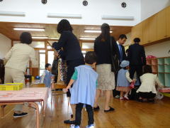 職員もお祝いの出し物をしました。はじめに「むすんでひらいて」の手遊びです。⇒飛行機になりました。