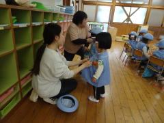 今日からスクールバスも運行し、年少さんは初めての登園でした。