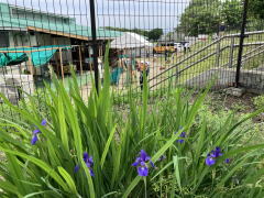 年長さんがマルチを張って来週夏野菜を植える準備をしていました。夏野菜は、ピーマン、なすび、オクラなど5種類の予定です。