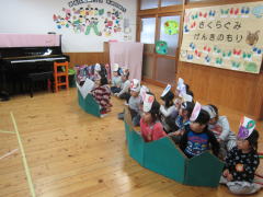 2月14日から20日にかけて生活発表会をおこないました。それぞれのクラスでお話をつくり、子どもたちの得意なものを披露しながら発表をしました。役になりきってセリフを言う姿や表現している姿を見ていただきました。子どもたちのキラキラした表情や動きがとても可愛らしかったですね。大きく成長した子どもたちが眩しく見えました。