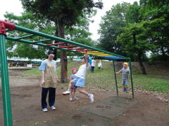 先生の前でロボットになって喜んでもらおうと頑張る年少さん。