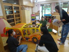 ぱんだ組では先生がおうちから持ってきたバスの遊具で大盛り上がりでした。