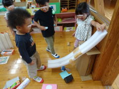 園児はただ遊んでいるのではありません。想像し、そして創造しながら工夫して、形に表しているのです。