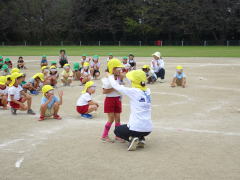 運動会当日に熱発で休んだ年長園児が元気になりました。おうちの人にも来ていただき、年長さんはみんなで運動会ごっこを行いました。