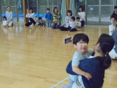 今日は10時からどんぐりルーム(地域子育て支援室)の運動会を、遊戯室で行いました。入場行進のようすです。