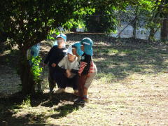 園庭で園児と先生が木をじっと眺めていました。