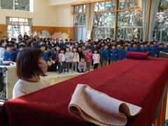 今日は2学期の終業式でした。園長からは冬休みのお手伝いやあいさつを頑張ろうという話をしました。副園長先生は、冬休みのくらし方と、干支が龍から蛇になるという話をしました。
