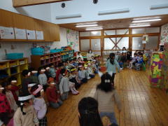 りんご組(年少)の通し練習にも、さくら・うめ組の園児が見に来てくれました。