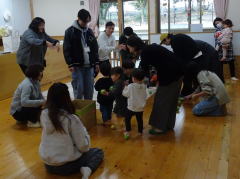 6日(木)はお別れ会でした。まず園庭やお部屋で親子で遊んでいただきました。