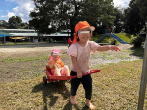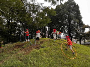 どんぐりでなく、こちらはフラフープを転がして遊んでいました。