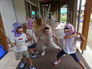 とても活動的な忍者です。「上靴、はこうね。」と注意する忍者もいますね。