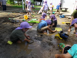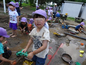思いきり泥んこにまみれるのが気持ちいいのでしょう。