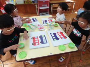 もう片方のお隣では、運動会のリズム演技に合わせて、動物さんが乗るバスを制作していました。