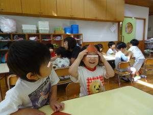 隣のクラスでは、折り紙で栗を作っていました。