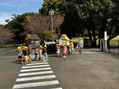 秋祭りのみこしを運ぶ年長さん。どこへ、何にために運んでいるのでしょうか…