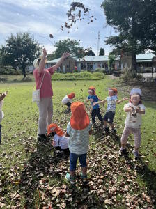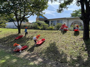 秋らしくなってきましたね。今日はグラウンドで落ち葉遊びをしたり…