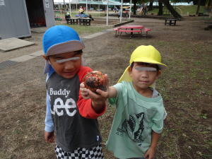他にも、いろいろな木や草の実が年長さんのお部屋の前に並べられています。