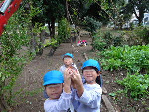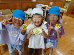 スーパーには売ってなくとも、ザクロやキンカンの実が身近になっていて、それが食べられること、そのことは小中学校の学習指導要領には何も書いてありません。大人になっても直接仕事や生活に必要のないことかもしれません。だからこそ、幼児期に自然の中で過ごし遊ぶ中で経験することが大切だと思います。自分で収穫した物が食べられるという喜びを園児の表情から感じ取っていただければ幸いです。