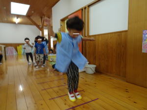 廊下では、立ち幅跳び遊びを楽しんで行っていました。(昨日撮影)