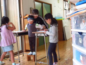 運動能力測定が来週あります。いろいろなところで運動測定ごっこがあっていました。
