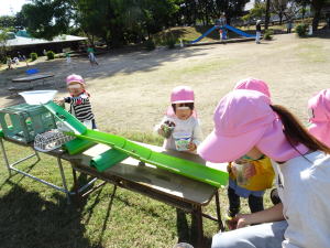 今日は秋らしいさわやかな気候でした。この気候に誘われて外に出ていろいろな遊びを楽しんでいました。