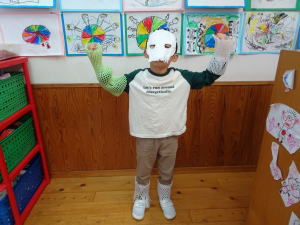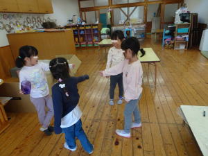 おとなりの部屋から聞こえてきた音楽に合わせて「じゃんけんポン。」
