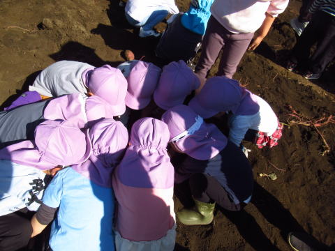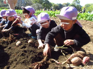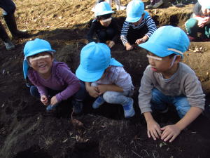 先週の年長さんに続いて今日は年中さんがカントリーパークに芋ほりに行きました。
