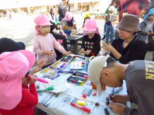 ⑨「落ち葉や草花を使ったしおりや絵画制作」 こちらのコーナーも大盛況でした。
