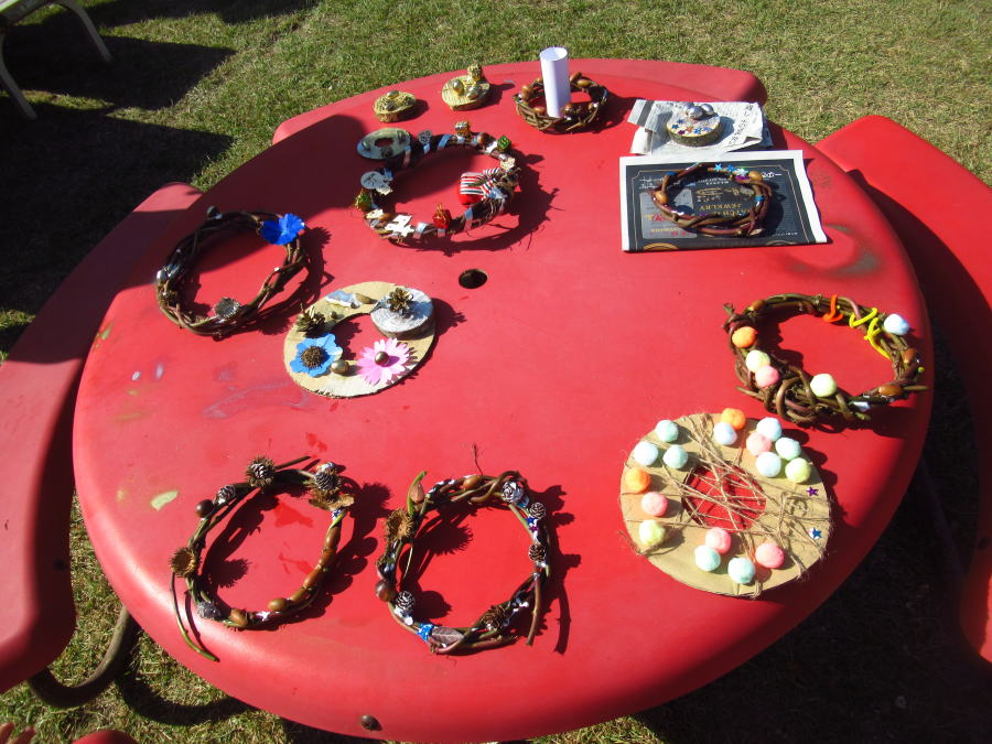 ⑩「リースやオブジェづくり」 つるや枝を使ってリースを作りました。