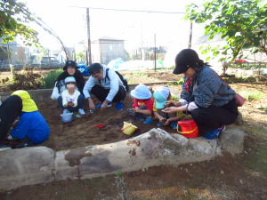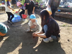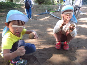 ⑥「泥団子づくり (順番を飛ばしていました。)」 本園には砂場以外にも、赤土場と黒土場があります。