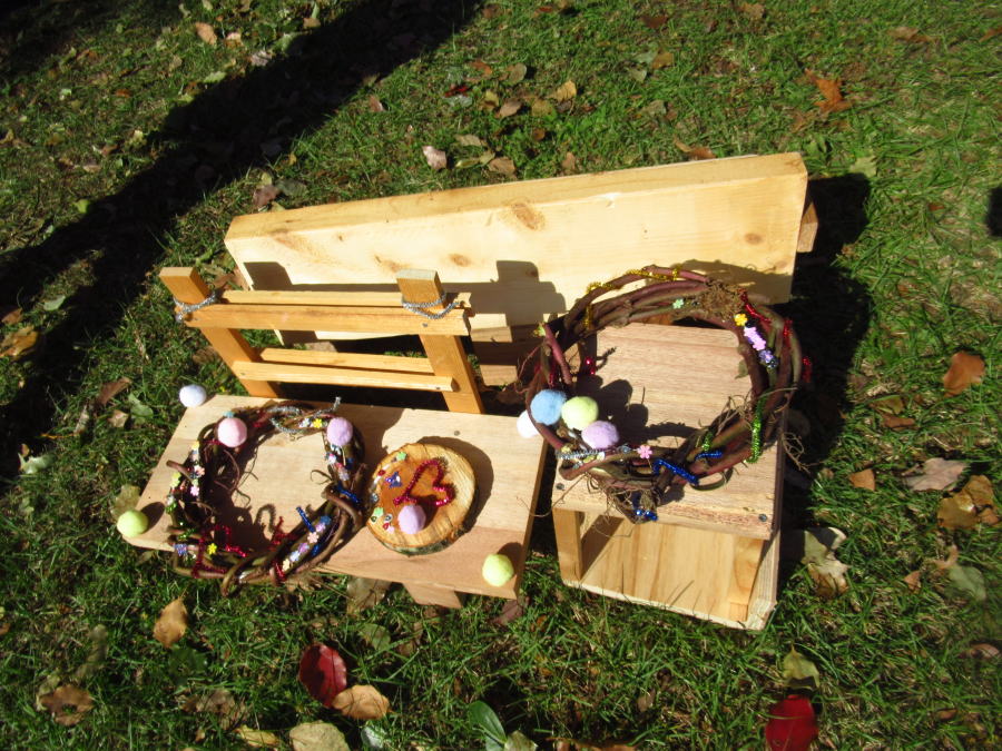 ⑩「リースやオブジェづくり」金色に光るリースやオブジェもできていました。クリスマスに飾り付けるのが楽しみですね。