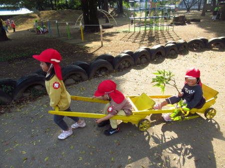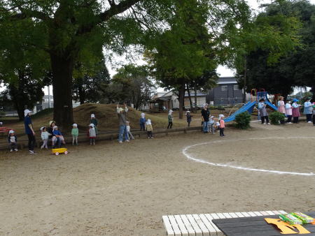 今日は半年ぶりに「なかよし集会」がありました。みんなで「どんぐり体操」をしました。