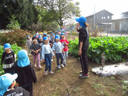 11月20日(木) 野菜(だいこん、ほうれんそう)の収穫(年長) その1