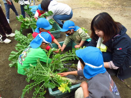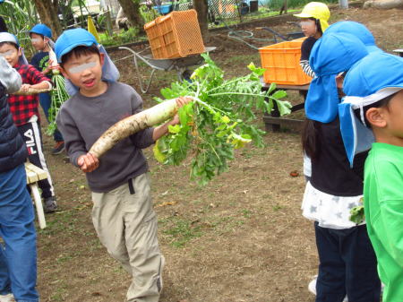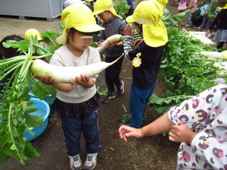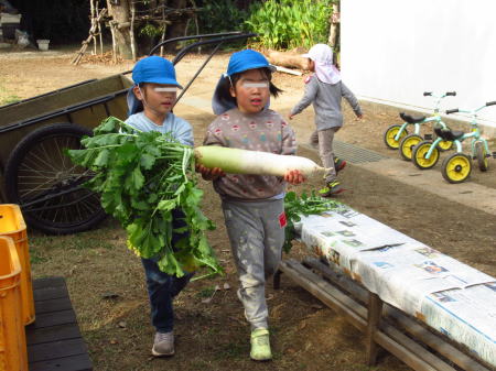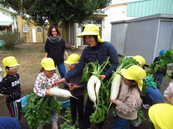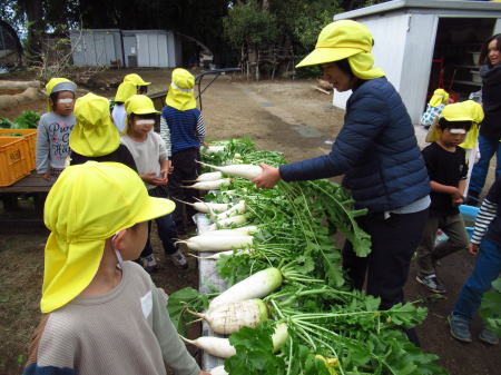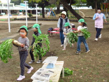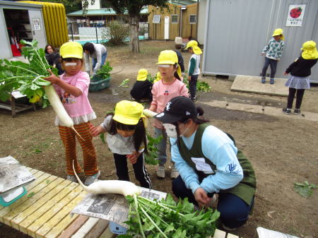11月20日(木) 野菜(だいこん、ほうれんそう)の収穫(年長) その2