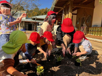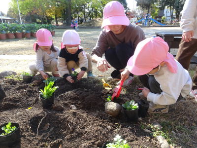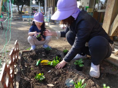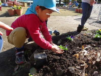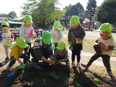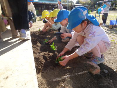 年長さんは先生がいなくても自分たちで上手に植えることできます。