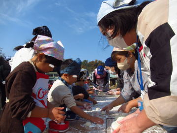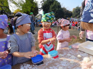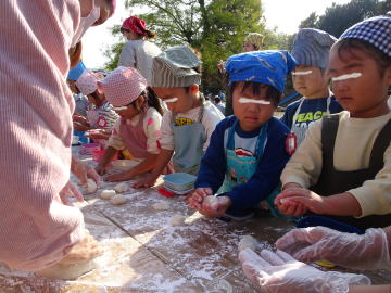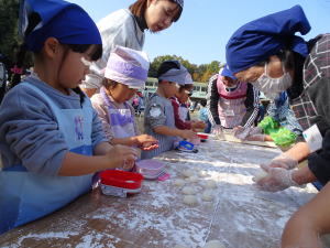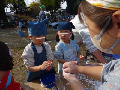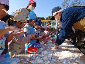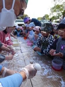 年中・年長さんは、餅を丸める作業も体験しました。保護者の方だけでなく・・・