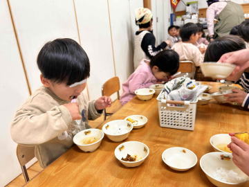 今日は昨日とうって変わってとても寒い一日でした。給食のおかずはタイピーエンでした。ご飯を入れて食べると温まって食が進むようでした。
