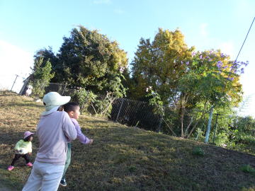 坂登りができてご満悦のりす組(1歳児クラス)さんです。