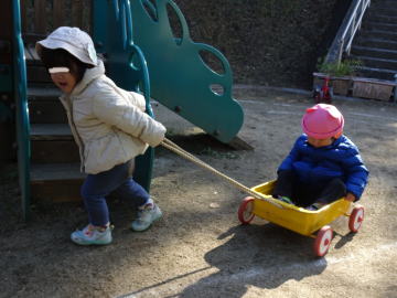 友だちに引っ張ってもらって気持ちよさそうでした。
