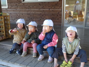 うさぎ組(2歳児クラス)さんが先生とキンカンを食べていました。「みかんじゃないよ。」と教えてくれました。