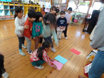 最後尾の園児が見事正解の色紙を取ることができました!楽しいひと時を市川先生のおかげで過ごすことができた年長さんでした。明日は、にじ組です。